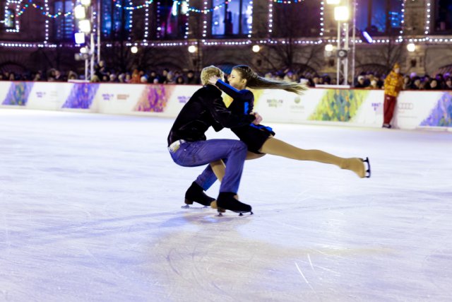 Праздничный вечер открыло выступление профессиональной пары фигуристов, которые продемонстрировали азы фигурного катания и создали новогоднее настроение у гостей. Для всех желающих научиться кататься был организован мастер-класс. Даже те, кто ни разу не стоял на коньках, смогли довериться профессиональным тренерам и почувствовать себя уверенно на льду.