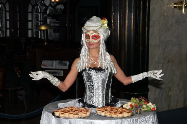 Как и водится в любой волшебной истории, чудеса и превращения ждали гостей с самого начала. Так, например, встречали их леди-фуршет в нарядах петровской эпохи, а также — каждый мог примерить и сфотографироваться в костюмах, который были в моде 300 лет тому назад...