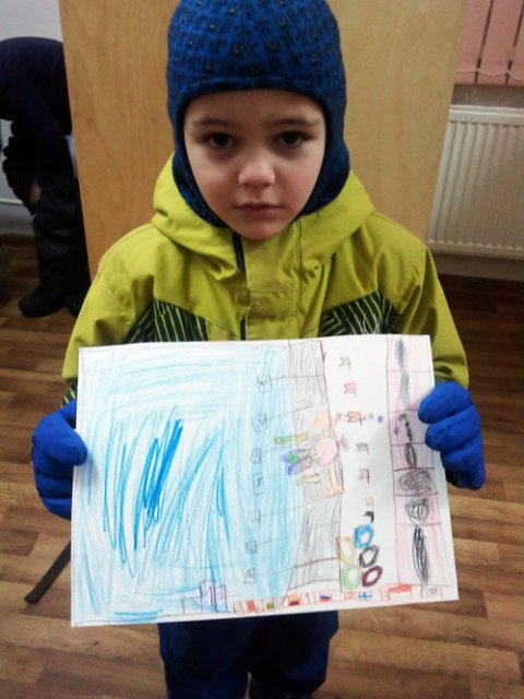 Началось все с одного рисунка, который в качестве теста на сообразительность для взрослых, принесла показать коллегам мама шестилетнего Максима (он — на одной из фотографий со своим рисунком). Нам это очень понравилось, и мы предложили и другим мамам узнать и рассказать нам, как их видят и рисуют Зимнюю Олимпиаду их детишки. Олимпийские звери, как выяснилось, в большом приоритете.