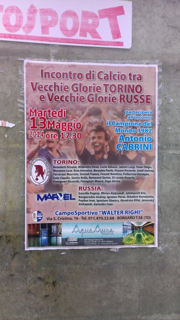 В ходе поездки участников мероприятия ждали сразу два события. Первым из них стал товарищеский матч команды «Марвел» против ветеранов «Торино», одного из старейших итальянских футбольных клубов, восьмикратного чемпиона Серии А, пятикратного обладателя Кубка Италии. Итальянцы серьезно подошли к делу — по городу были расклеены афиши, и даже главная спортивная газета Турина — Il Corriere Sportivo — посвятила целую полосу анонсу матча. В результате на стадионе Borgaro собрались не только российские болельщики — участники поездки, но и итальянские поклонники «Торино».