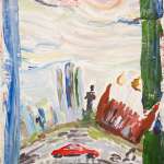 Для того чтобы изображение обрело определенный эмоциональный заряд Белютин использовал самые разнообразные способы воздействия на ученика. Одной из самых распространенных форм психологического воздействия было формулирование заданий в стихотворной форме. Это были не стихи в привычном понимании, а скорее набор образов и ассоциаций, задача которых сформировать в художнике личное переживание, которое и будет запечатлено. Белютин называл их «Темами для неуправляемой живописи». Примеры таких заданий были даны рядом с каждой работой, представленной в зале. Темой мастер-класса стала «Жара в городе», в качестве основы было выбрано стихотворение В. Маяковского 1913г. «Адище города», которое объединяет очень емкие и осязаемые образы.