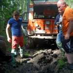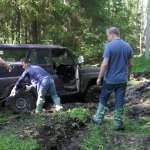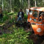 Отработав плотную деловую программу, под вечер все отправились к месту старта гонок на джипах. Кругом зеленели луга и поля, а пролегавшая через них дорога на первый взгляд не сулила водителям больших приключений: нормальная такая проселочная дорога, даже успевшая уже немного просохнуть под майским солнышком. Однако высокие резиновые бахилы гонщики все-таки взяли, вместе с дорожными картами, на которых был отмечен маршрут джип-тура – не очень длинный, но, как вскоре выяснилось, весьма содержательный. Холмы и буераки, скользкие спуски и подъемы, лесные тропы с поваленными деревьями, глубокие колеи, залитые водой, фонтаны грязи из-под буксующих колес, попытки вытянуть машину, которая завязла «не глубоко, только на полколеса»… Всё, как полагается в гонках по бездорожью. Кстати, у многих участников была возможность сравнить свои ощущения с прошлым годом, когда заседание Телеком-форума завершилось соревнованиями по картингу, и решить для себя, что интереснее: промчатся по асфальтированной трассе, намотав десятки километров на пределе скорости машины, или за то же время преодолеть участок офф-роуд. Всего-то, может быть, сотню метров – зато каких! Добравшись до финиша, уже можно считать себя победителем, и душ из шампанского тут подходит не меньше, чем на «Формуле-1». А компания OCS, организовавшая эту встречу, теперь может с гордостью сказать: «В нашем Телеком-форуме участвовали крутые джиперы!»