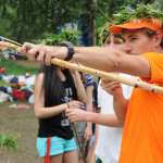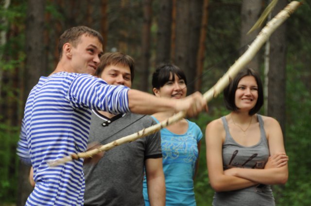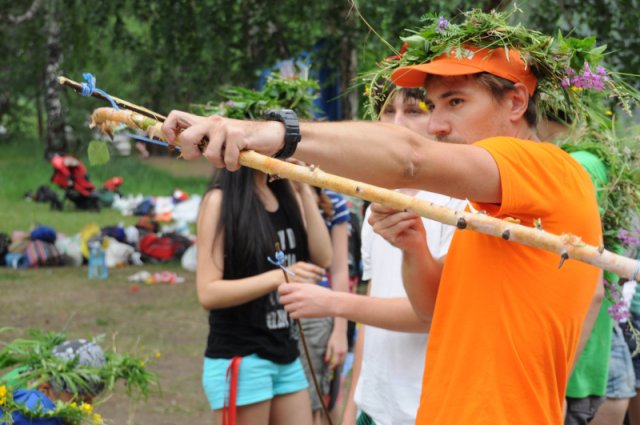 Не перевелись ещё добры молодцы да красны девицы на земле Русской! Собрались они в июньский полдень на поляне у Олхи-реки на подвиги богатырские, сказочным лесным жителям помочь. Под флагами ФоРуси сколотили они четыре дружины ратные: Муромцев, Никитичей, Поповичей да Буслаевичей. По велению княгинь святой ФоРуси отправились на подвиги славные. Сначала силой духа да сноровкой померились, а потом ловкостью похвастались. Смастерили себе луки со стрелами, зелёными венками головы покрыли и пошли в путь-дороженьку Алатырь-камень искать, где все пути сказочные зачинаются.