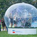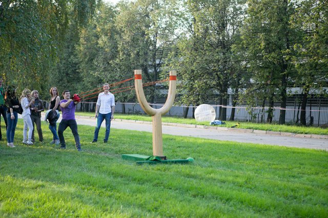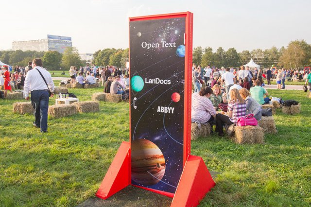 А на поле за символическими «дверями в новые измерения» расположились стенды 25 подразделений и дочерних компаний ЛАНИТ. Гостей стендов ждали интересные мастер-классы, спортивные состязания и даже феерические развлечения. Здесь можно было отведать китайского печенья с предсказаниями, узнать секреты сухого льда и способы его применения в межгалактическом пространстве, запустить настоящий летательный аппарат. Желающие могли проверить свои знания школьной программы, в роли кузнецов выковать личную юбилейную монету ЛАНИТ, попрыгать на батуте и даже поиграть в Angry Birds с помощью мега-рогатки. В общем, развлечений хватало всем!