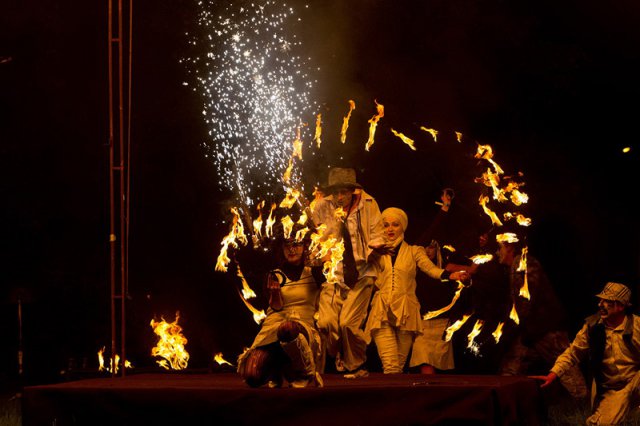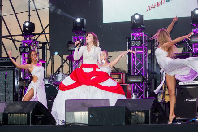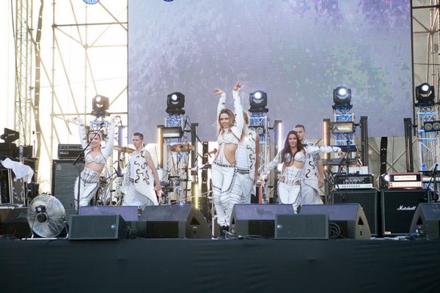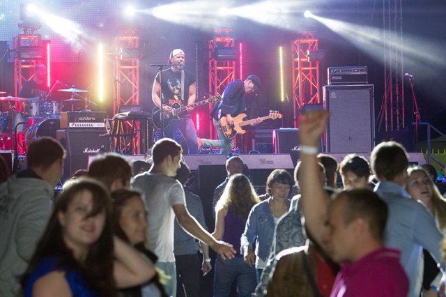 Праздник завершили лазерное и огненное шоу, выступление группы Би2 и дискотека под аккомпанемент музыкантов «Mersedes-Dance».