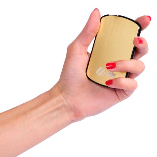 Новая модель «золотистого» цвета придется по вкусу представительницам прекрасного пола. Корпус из анодированного алюминия устойчив к царапинам и легким механическим повреждениям. Ультра легкий аккумулятор весит всего 50г и без труда помещается даже в дамском кошельке. Толщина устройства составляет всего 6 мм. Новинку приятно держать в руках, и она, несомненно, привлекает внимание окружающих своим лаконичным и стильным дизайном.