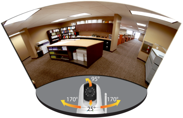 Новая камера обеспечивает охват наблюдаемого пространства с углами обзора 81° по горизонтали и 65° по вертикали и поддерживает возможность поворота от -170° до +170° и наклона в диапазоне от -25° до +95°.