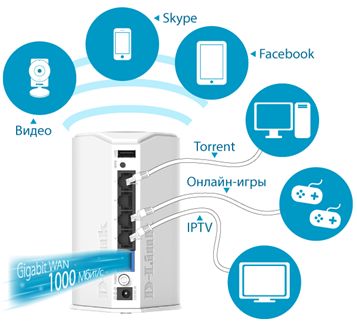 Гигабитный порт WAN позволяет максимально эффективно использовать ресурсы интернет-соединения, не ограничивая при этом клиентов домашней сети в требуемой скорости передачи данных. Запуская torrent-клиент, включая IPTV или просмотр стрима в HD-качестве, пользователь может быть уверен в том, что остальные члены семьи по-прежнему комфортно работают в Интернете: смотрят без пауз и зависаний фильмы в онлайн-кинотеатре, играют в игры, общаются с друзьями по Skype или пользуются «облачными» хранилищами.