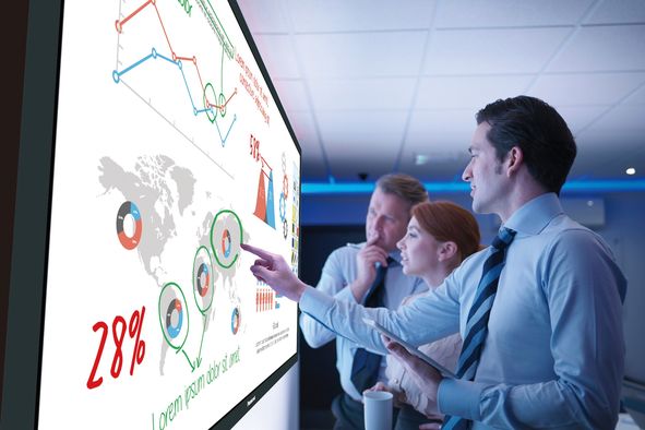 Новинки оснащены всеми современными интерактивными функциями для продуктивной совместной работы в комфортных условиях. Поддержка multitouch, беспроводной прием контента от мобильных устройств на базе iOS, и Android™, сетевое управление и богатый набор интерфейсов обеспечивают востребованность новых моделей во многих областях. Они могут применяться для обучения и тренингов в учебных заведениях и бизнес-среде, в переговорных комнатах и конференц-залах при проведении совещаний, для видеоконференцсвязи, в управлении производством на промышленных предприятиях.