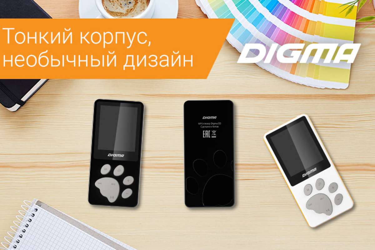 Семейство MP3-плееров Digma расширилось новой моделью с интересным дизайном корпуса. Digma S3 станет отличным компаньоном при занятиях спортом, прогулках и поездках в общественном транспорте. Компактный и красивый Digma S3 имеет эргономичные формы, что позволяет с легкостью поместить его даже в самый маленький карман одежды. Элементы управления расположены в виде лапы животного и находятся на достаточном расстоянии друг от друга, чтобы избежать одновременного нажатия на разные кнопки. Корпус выполнен из прочного матового пластика и имеет покрытие Soft-touch.