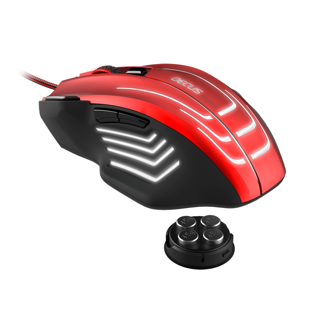 Оптический датчик DECUS RESPEC позволяет регулировать DPI от 400 до 5000, а частота опроса USB является полностью настраиваемой и может достигать отметки в 1000 Гц. Все семь кнопок мыши являются программируемыми, а мощный редактор макросов не только поможет создать нужные вам комбинации действий, но и запишет их в один из пяти профилей. А для любителей более весомых аргументов, внутри DECUS RESPEC находится дополнительный отсек с грузиками, утяжеляющими конструкцию мыши.