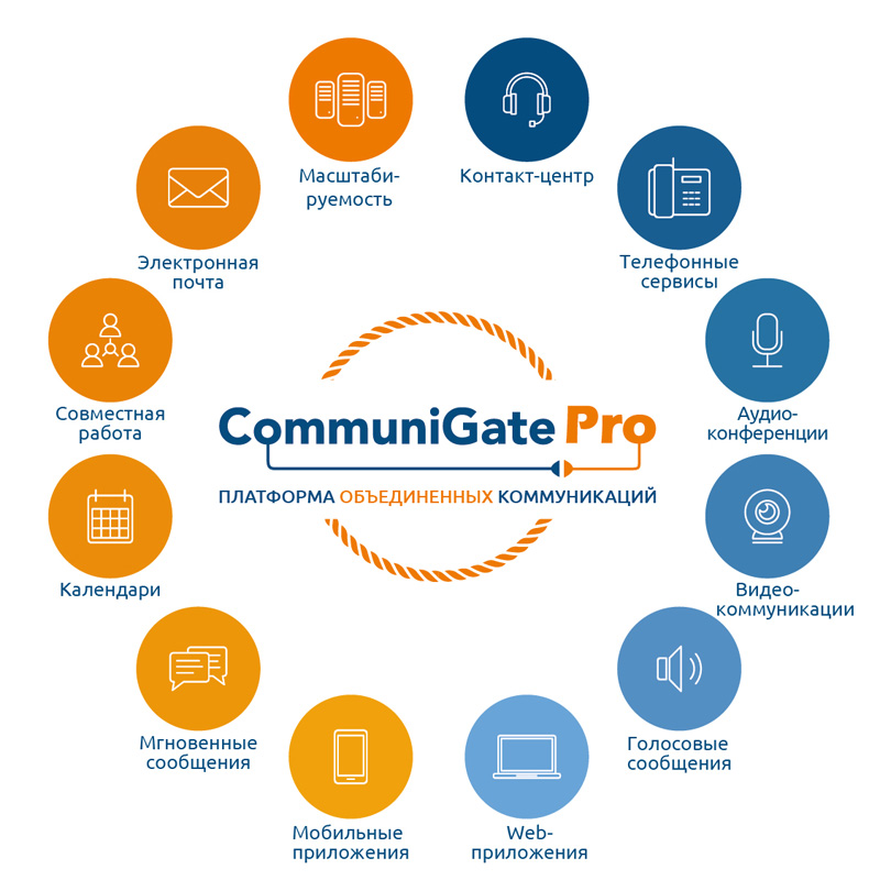 Мультипротокольный сервер CommuniGate Pro — комплексный программный продукт для создания корпоративных коммуникационных систем, от масштабов небольшого офиса до кластерных инсталляций, обслуживающих сотни тысяч пользователей по всему миру. Платформа CommuniGate Pro предоставляет полностью интегрированное решение операторского класса для управления и обмена календарями, контактами, задачами, мгновенными сообщениями, электронной почтой, голосом, видео, а также обеспечивает безопасность всех видов внешних и внутренних коммуникаций для web-ориентированных и мобильных пользователей. Решение поддерживает все актуальные серверные операционные системы. Платформа CommuniGate Pro включена в Единый реестр российских программ для ЭВМ и баз данных Минкомсвязи России, а также имеет сертификат соответствия ФСТЭК России.
