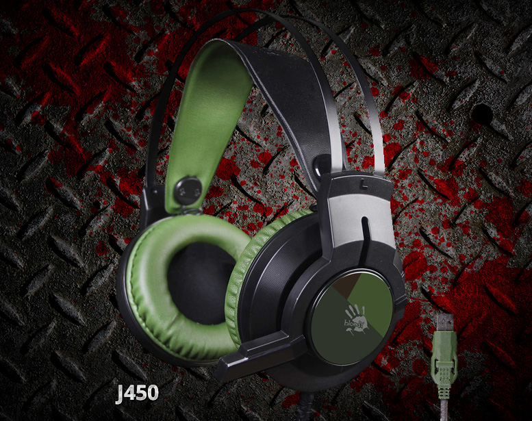 Эффектный дизайн наушников A4 Bloody J450 оценят даже самые требовательные пользователи - расцветка в стиле милитари, а также семь цветов круговой мерцающей подсветки.