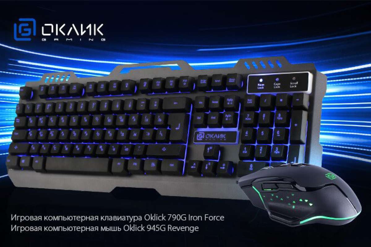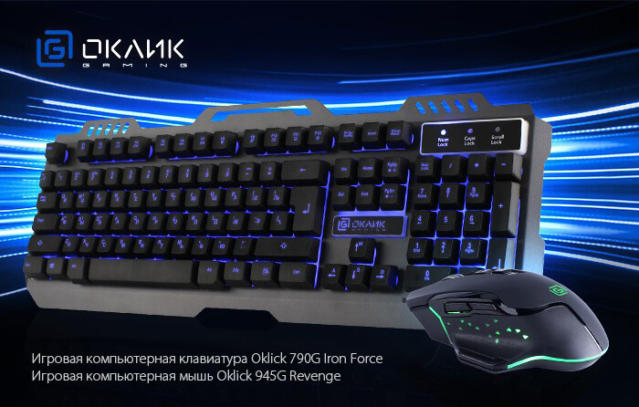 Линейка OKLICK Gaming пополнилась новыми моделями: клавиатурой OKLICK 790G Iron Force в металлическом корпусе и LED подсветкой, а также мышью OKLICK 945G Revenge.