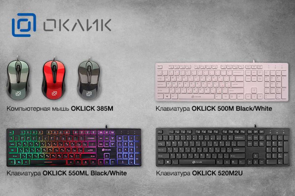 OKLICK представила новинки – проводные клавиатуры 500M, 520M2U, 550ML и мышь 385M.