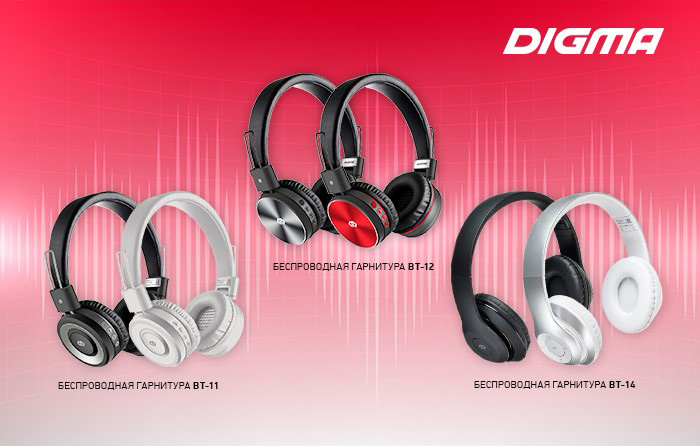 В новую линейку накладных гарнитур входят модели DIGMA BT-11, BT-12 и BT-14. Наушники отличаются друг от друга внешним видом, объёмом батареи и поддержкой внешних карт памяти.
