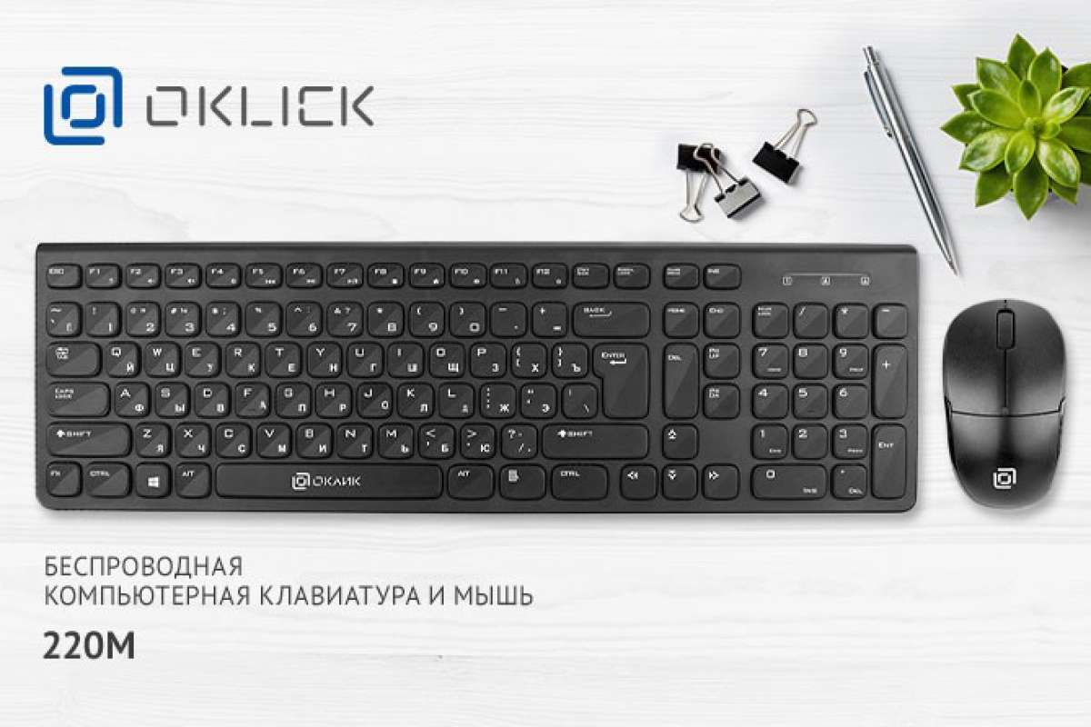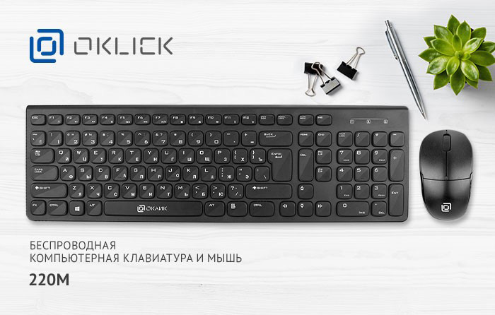 OKLICK, производитель компьютерной периферии, запустил в продажу новый набор OKLICK 220M, включающий клавиатуру и мышку. Отличительные черты новинки – беспроводное соединение и приятный лаконичный дизайн.