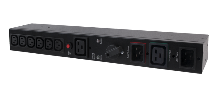 Модель MBP20HVIEC6 предназначена для работы с однофазными ИБП и оборудованием мощностью до 3кВА. Она достаточно универсальна по установке и может крепиться как к самому ИБП, так и на стойку горизонтально или вертикально, позволяя бережно относиться к рабочему пространству. На байпасе располагаются выходные розетки IEC C13х6 и IEC C19, что обеспечивает совместимость с большинством ИТ-оборудования.