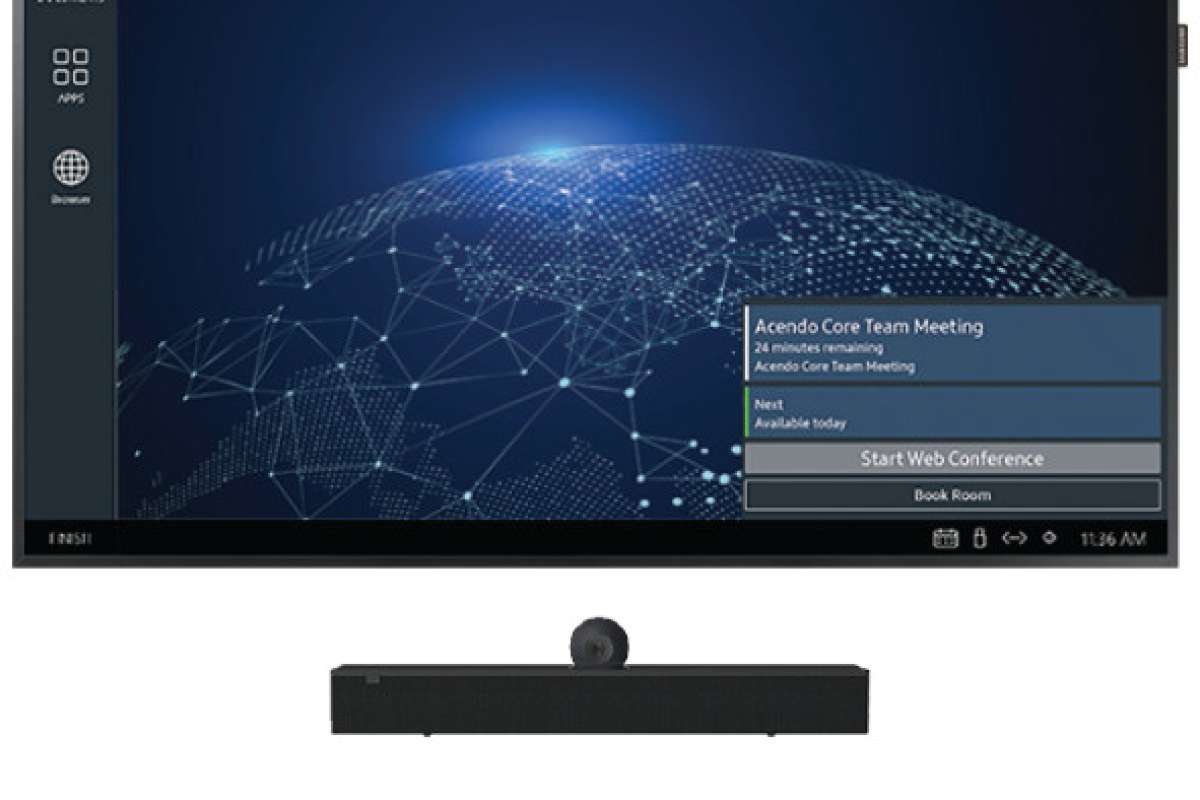Комплект системы для совместной работы «Всё-в-одном», Включает: сенсорный FullHD LED дисплей Samsung PM55F-BC, ядро системы AMX Acendo Core, саундбар с камерой и микрофонным массивом AMX Acendo Vibe (Чёрный), аксессуары.