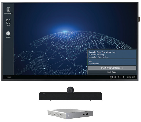 Комплект системы для совместной работы «Всё-в-одном», Включает: сенсорный FullHD LED дисплей Samsung PM55F-BC, ядро системы AMX Acendo Core, саундбар с камерой и микрофонным массивом AMX Acendo Vibe (Серый), аксессуары.