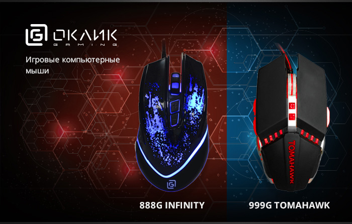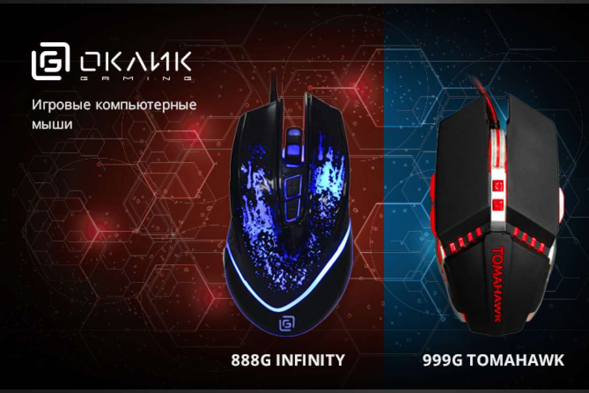 OKLICK стартовал продажи двух новых компьютерных мышей игровой линейки: 888G Infinity и 999G Tomahawk.