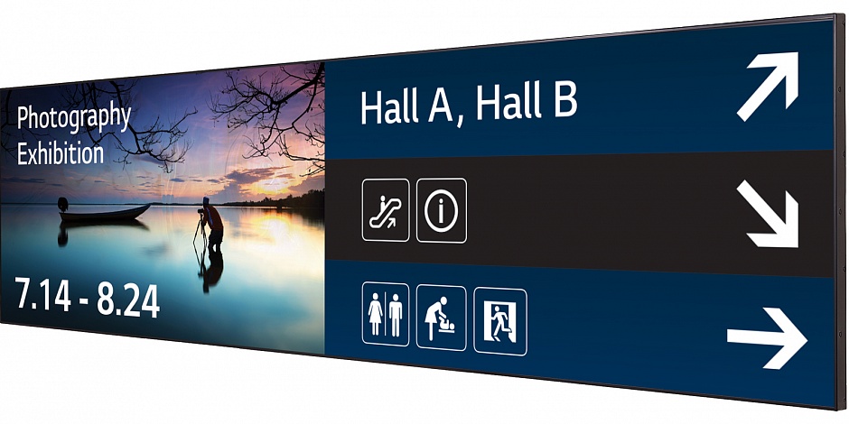 Стрейч-дисплеи предназначены для демонстрации широкоформатного мультиконтента и позволяют разместить максимум полезной информации компактным образом. Оформление лифтовых холлов, различных пространств в развлекательных и бизнес-центрах, спортивных комплексах и кинотеатрах дисплеями в портретной ориентации всегда производит эффектное впечатление на посетителей и является неотъемлемой частью современного интерьера.