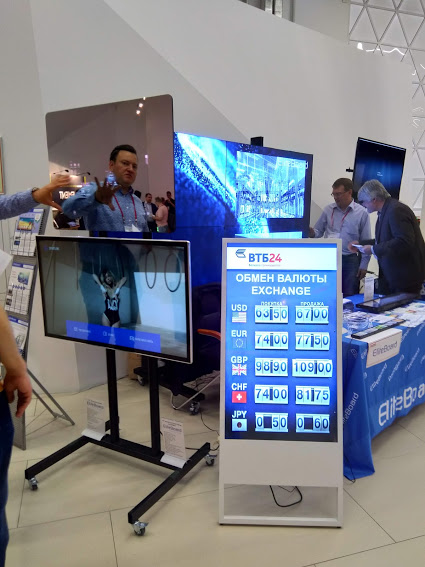 Гости экспозиции были приятно удивлены элегантным дисплеем с эффектом зеркального экрана, который можно использовать как в рекламных, так и в презентационных и информационных целях.