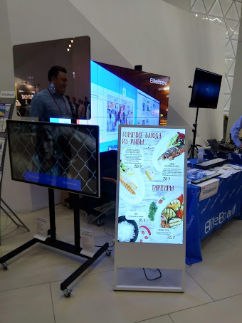 Особым вниманием потенциальных покупателей-заказчиков пользовался мобильный штендер Digital A-Frame - отличная замена статичным баннерам, уличным указателям и классическим штендерам, на которые закрепляются рекламные металлические, пластиковые или бумажные листы.