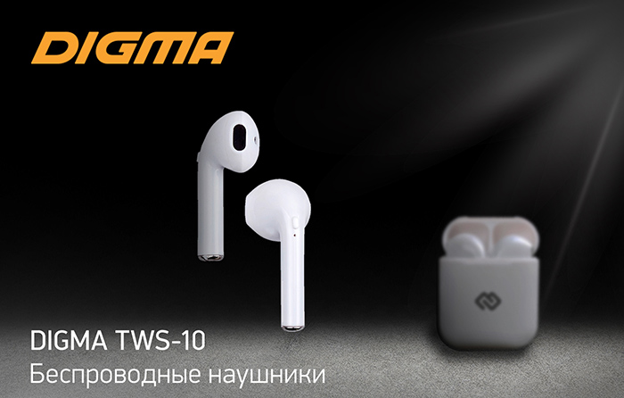 Перед вами новый продукт от DIGMA – беспроводные наушники-вкладыши закрытого типа TWS-10. Новинка выполнена в духе актуальных трендов и отличается хорошими техническими характеристиками, при этом цена устройства позволяет отнести его к разряду доступных.