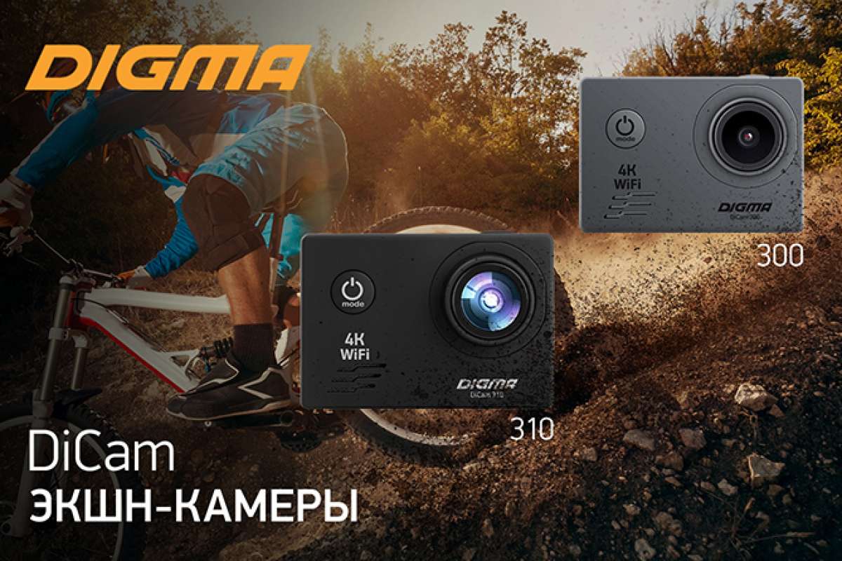 DIGMA представил пару новых экшн-камер из линейки DiCam – 300 и 310. Камеру отличает возможность записи в разрешении 4K Ultra HD и возможность управления со смартфона.