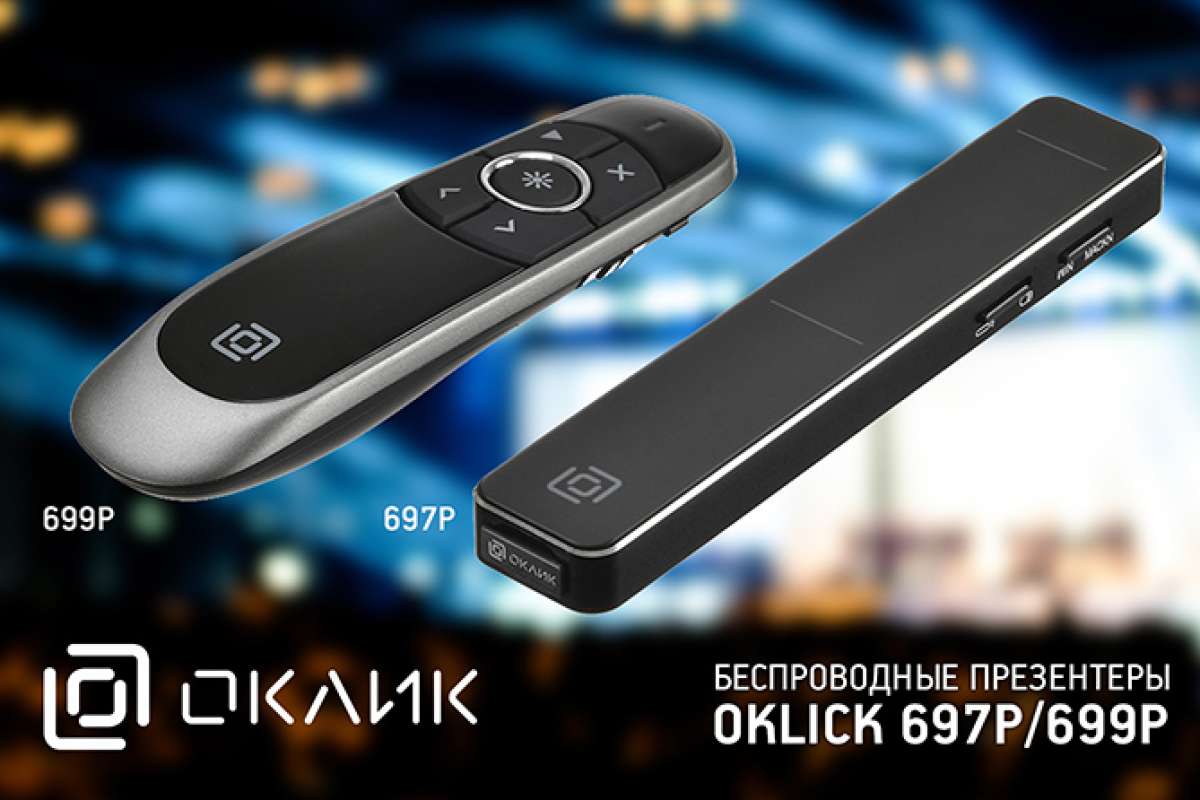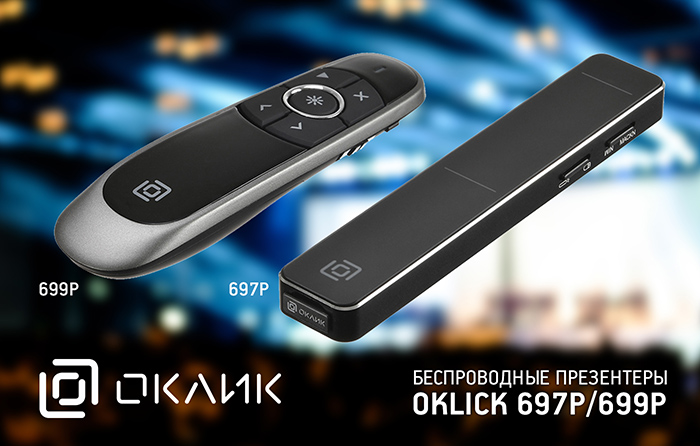 Профессионала своего дела выгодно отличает умение подать информацию максимально понятно для аудитории. Здесь на помощь придут новые модели презентеров OKLICK: 697P и 699P.