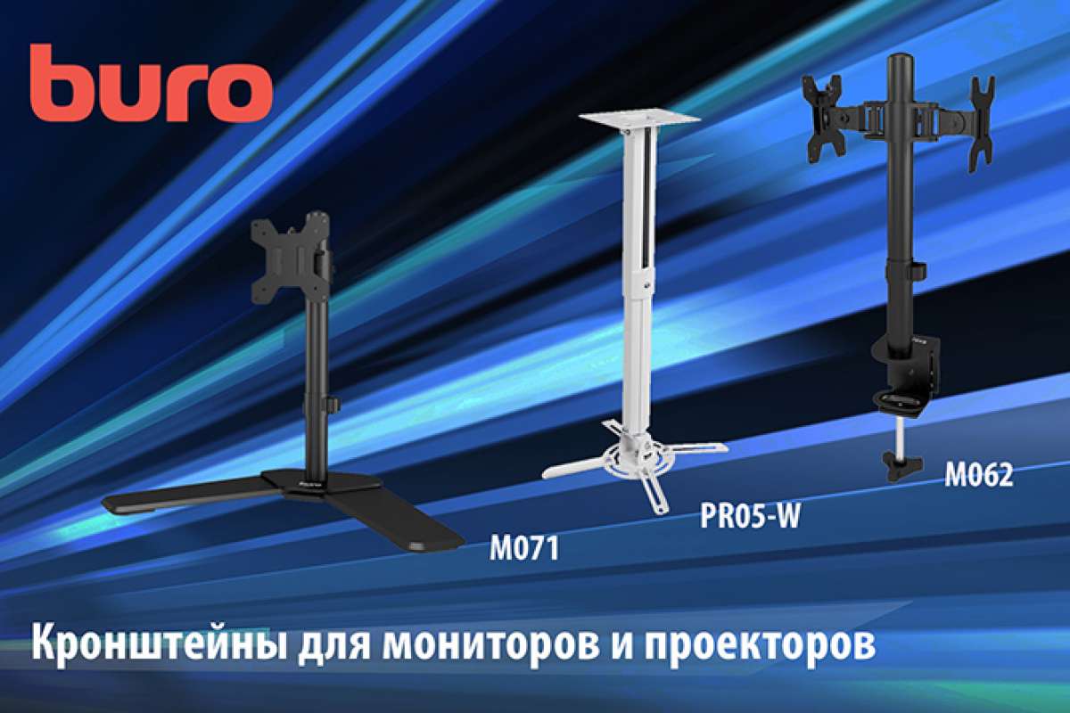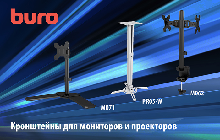 Модельный ряд бренда BURO пополнили в общей сложности 8 новых кронштейнов – шесть для мониторов и два для проекторов: M042, M052, M061, M062, M063, M071, а также PR05-W и PR05-B. Представленные устройства отличаются надёжностью конструкции и качественными материалами сборки.
