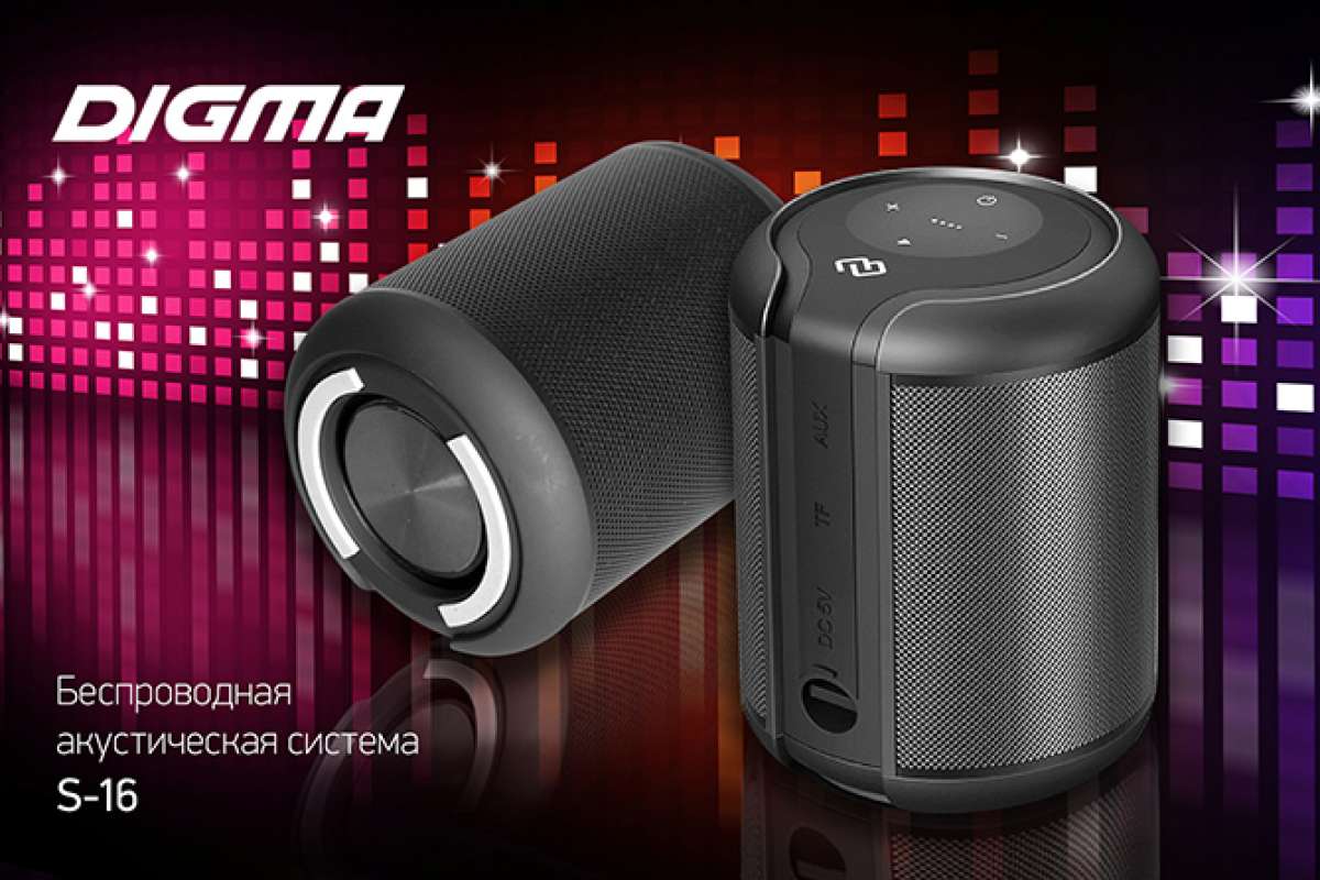 DIGMA выпустил новую беспроводную акустическую систему — S-16. Это небольшое, но достаточно мощное устройство со стереовходом на 3.5 мм, а также поддержкой карт памяти, TWS и протокола Bluetooth.