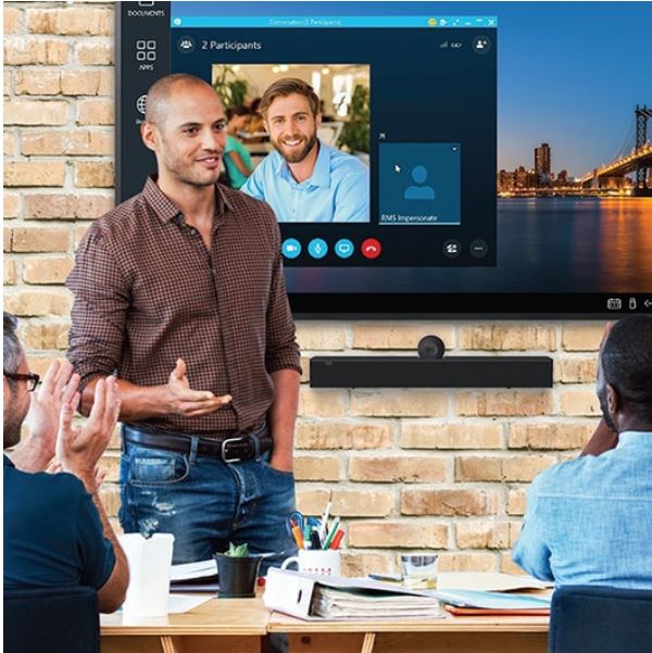 Комната зарезервирована, а несколько кликов по панели будят спящую переговорную за секунды. Сценарий запущен: горит свет, на системе климат контроля выставлена оптимальная температура, умный саундбар AMX Acendo Vibe, лаконично вписанный в интерьер благодаря хорошо подобранным материалам, готов к работе и уже включил ЖК-панель на которой начальный экран BYOD устройства приглашает начать сессию. С нажатия на сенсорной панели автоматически запускается Skype для подключения к собранию сотрудника, которого пришлось выдернуть из отпуска. Группа из пяти человек и смотрящий на них с экрана эксперт в гавайской рубашке сразу погружаются в работу.