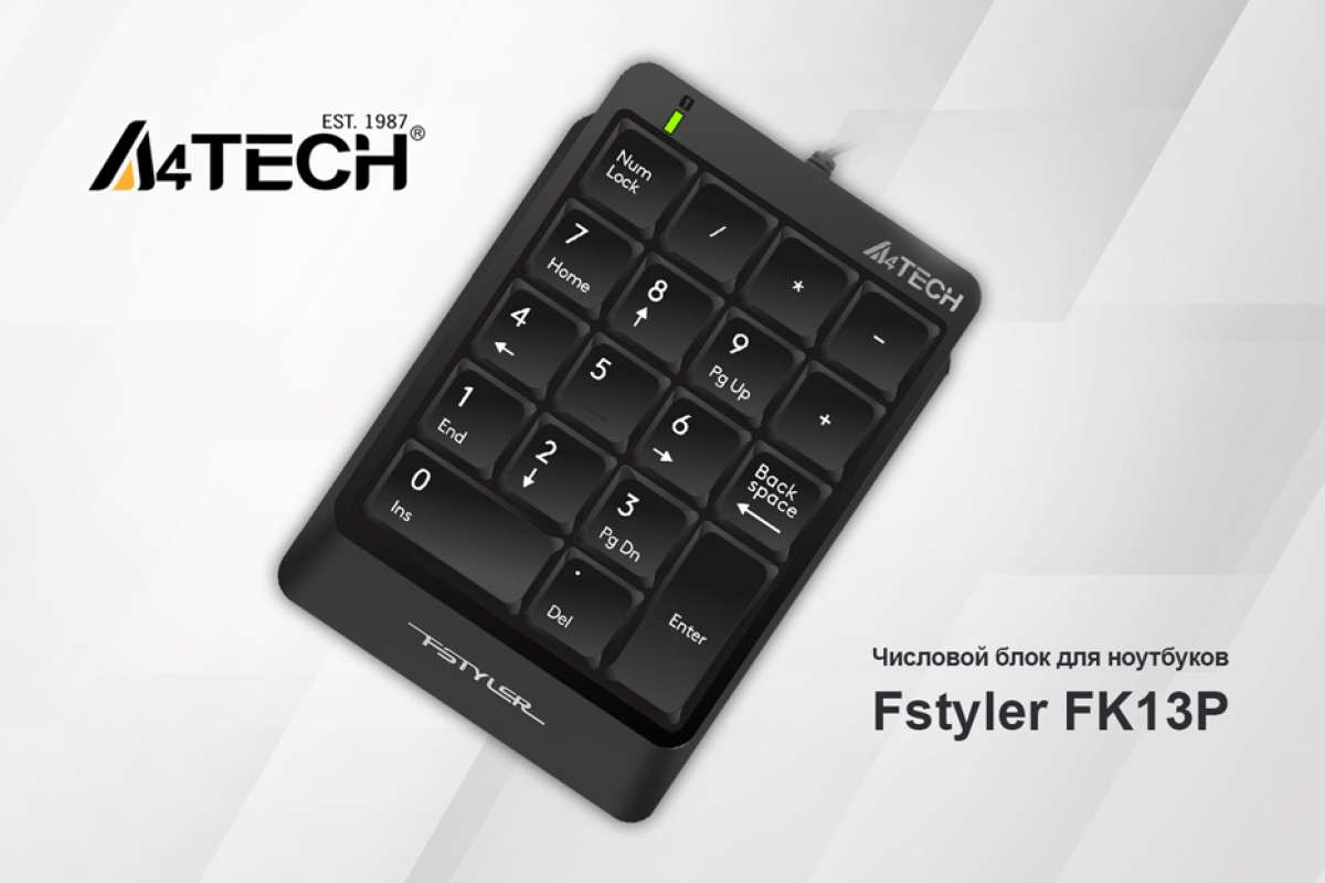 В продолжение развития своей линейки периферии для дома и офиса, компания A4Tech анонсировала выход ещё одного устройства — мини-клавиатуры Fstyler FK113P в формате так называемого «числового блока». Её основное назначение — комфортная работа с большими объёмами числовых данных, например, сводных таблиц или отчётных документов на ноутбуках и портативных компьютерах с основной клавиатурой меньших размеров. Новая модель будет удобна тем, кто часто совершает деловые поездки, связанные с учётной и финансовой деятельностью.