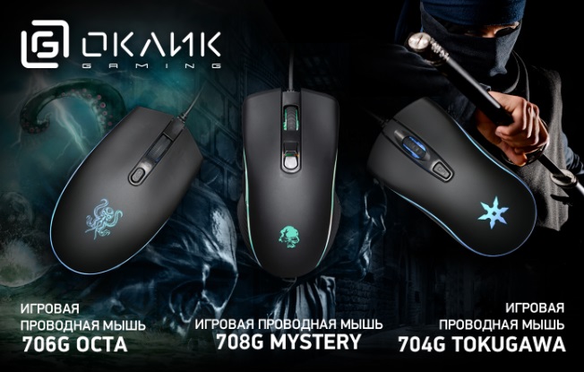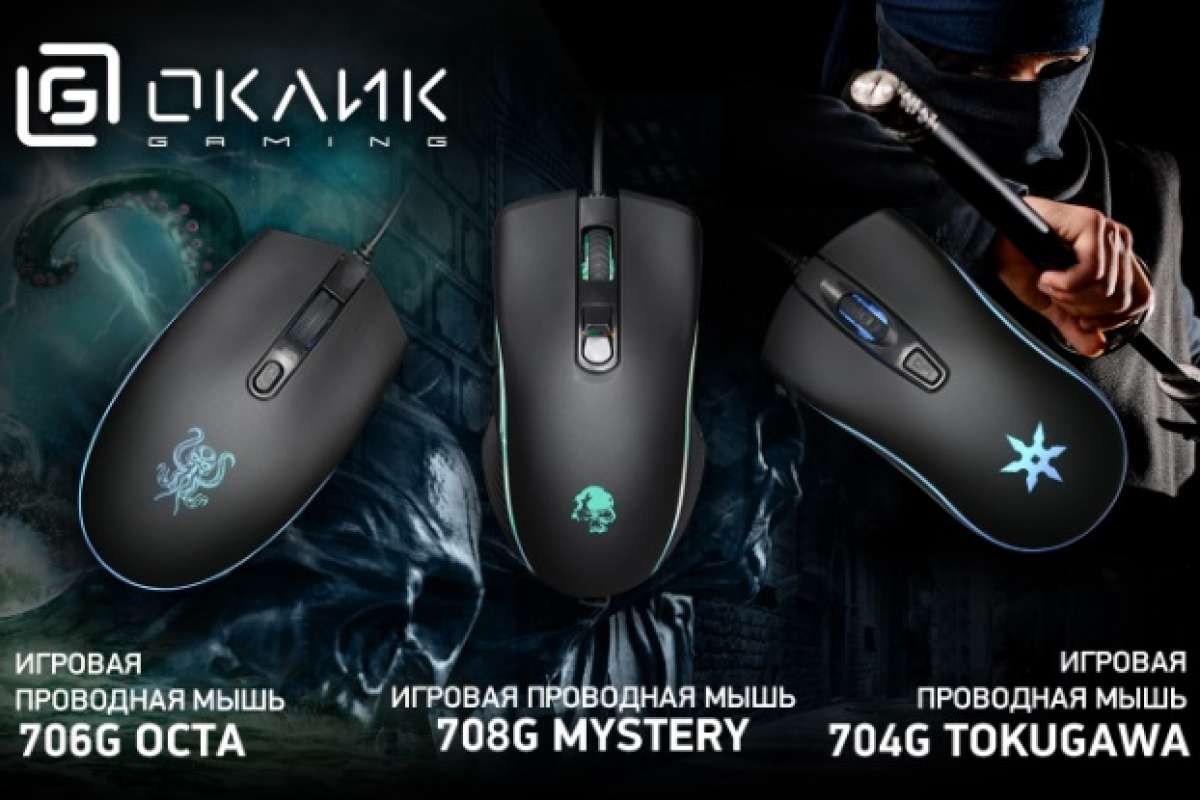 ОКЛИК, производитель компьютерной периферии, пополнил геймерскую линейку ОКЛИК Gaming новыми компьютерными мышами – 704G Tokugawa, 706G Octa и 708G Mystery. Модели обладают высоким разрешением оптического сенсора и многоцветной подсветкой.