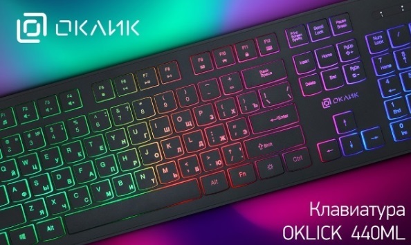 OKLICK, производитель компьютерной периферии, начал продажи новой проводной клавиатуры с подсветкой – OKLICK 440ML. Представленная модель получила стильный внешний вид, удобные клавиши ноутбучного профиля, а также регулируемую, многоцветную подсветку, которую можно отключать или включать по желанию.
