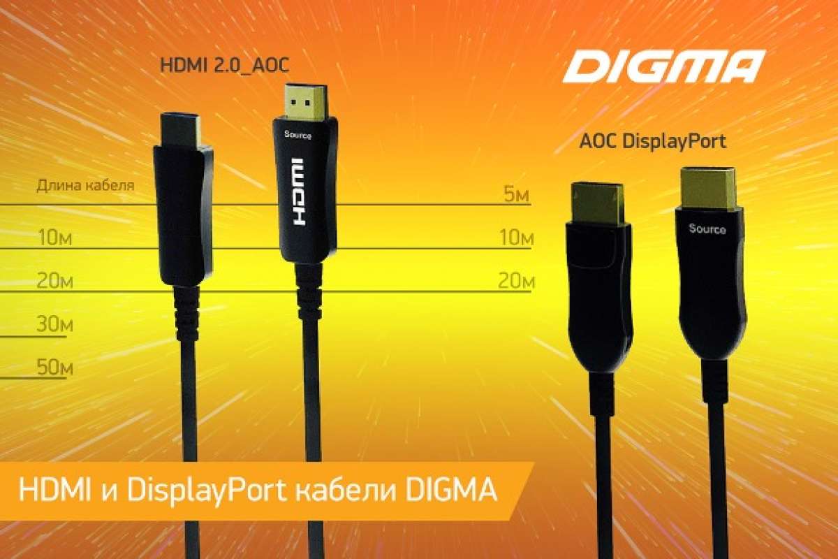 Бренд DIGMA, производитель электроники для повседневной жизни и бизнеса, объявил о пополнении модельного ряда продукции новыми кабелями с портами HDMI и Display Port. Они разной длины, так что можно легко подобрать подходящий.