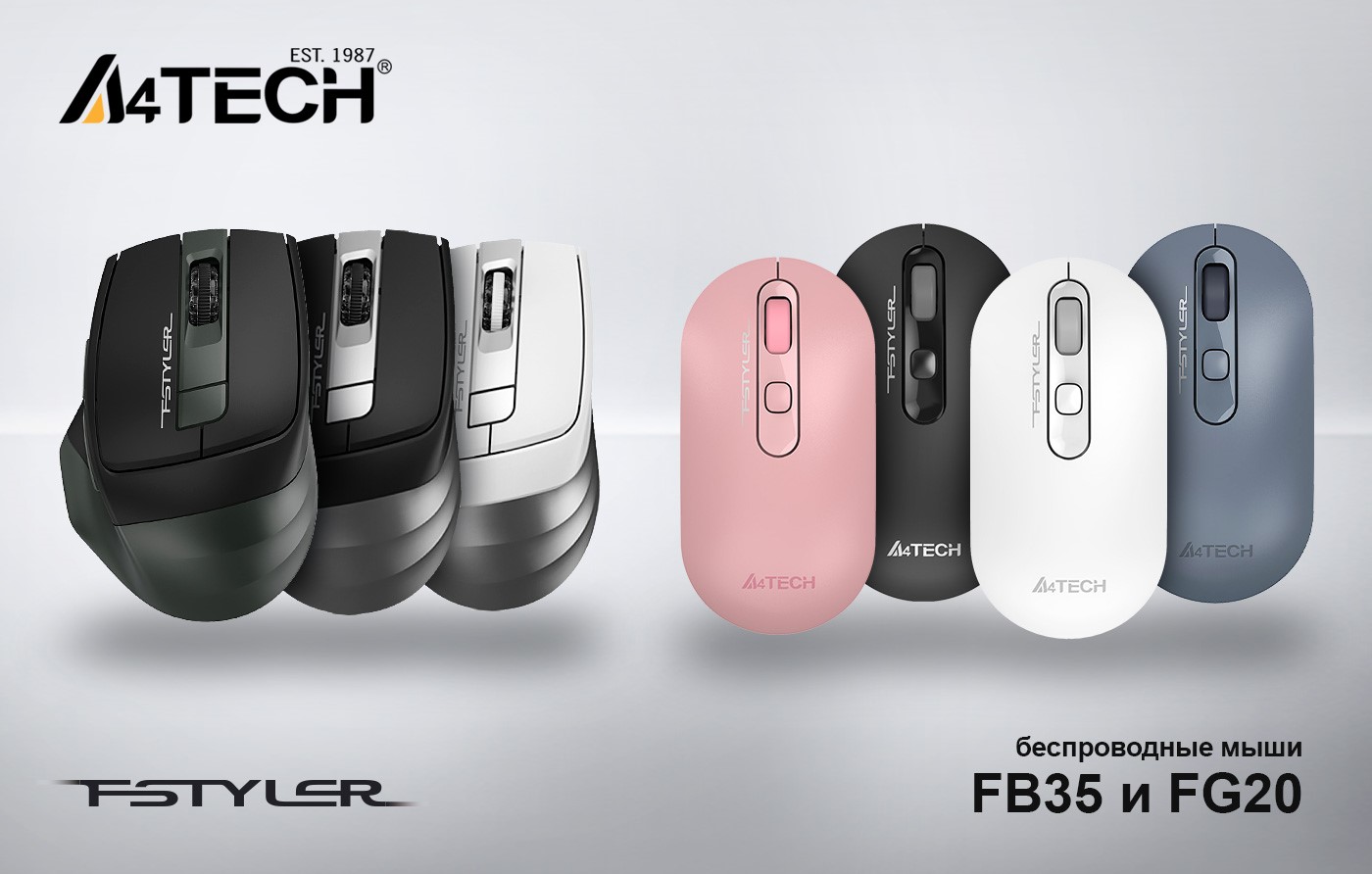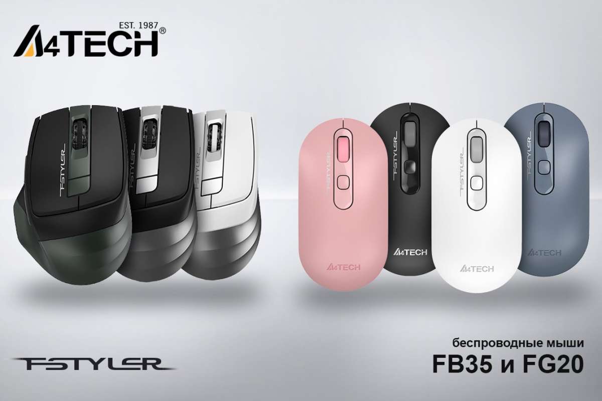 Компания A4Tech выпустила две новые модели беспроводных мышей. В частности, модель A4 Fstyler FG20 представлена в четырех цветах: серый, розовый, белый и пепельный. А модель A4 Fstyler FB35 в трех цветах: серый, черно-зеленый и бело-серый. Новинки отличаются большими возможностями и продуманным эргономичным дизайном, что делает их идеальными инструментами для удаленной работы, командировок, деловых поездок и любых путешествий.