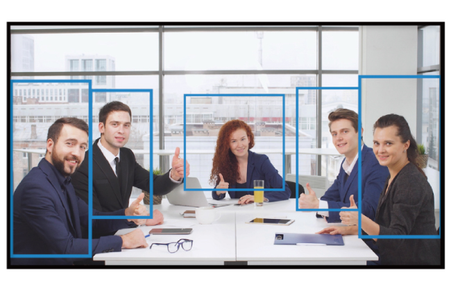 * Автоматическое цифровое определение лиц без ручной фокусировки для идеального обзора для всех участников