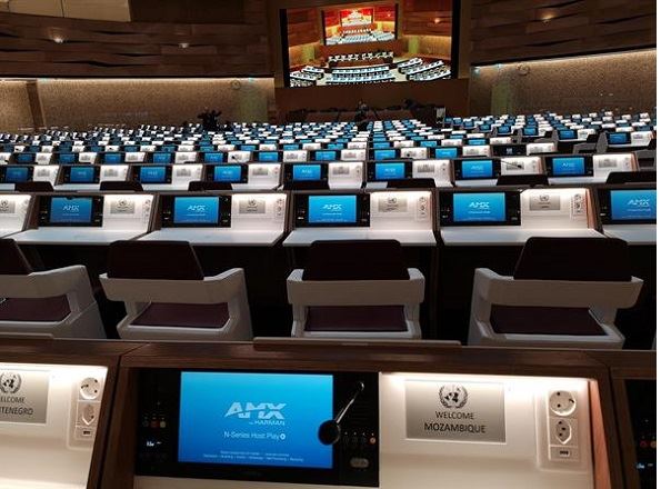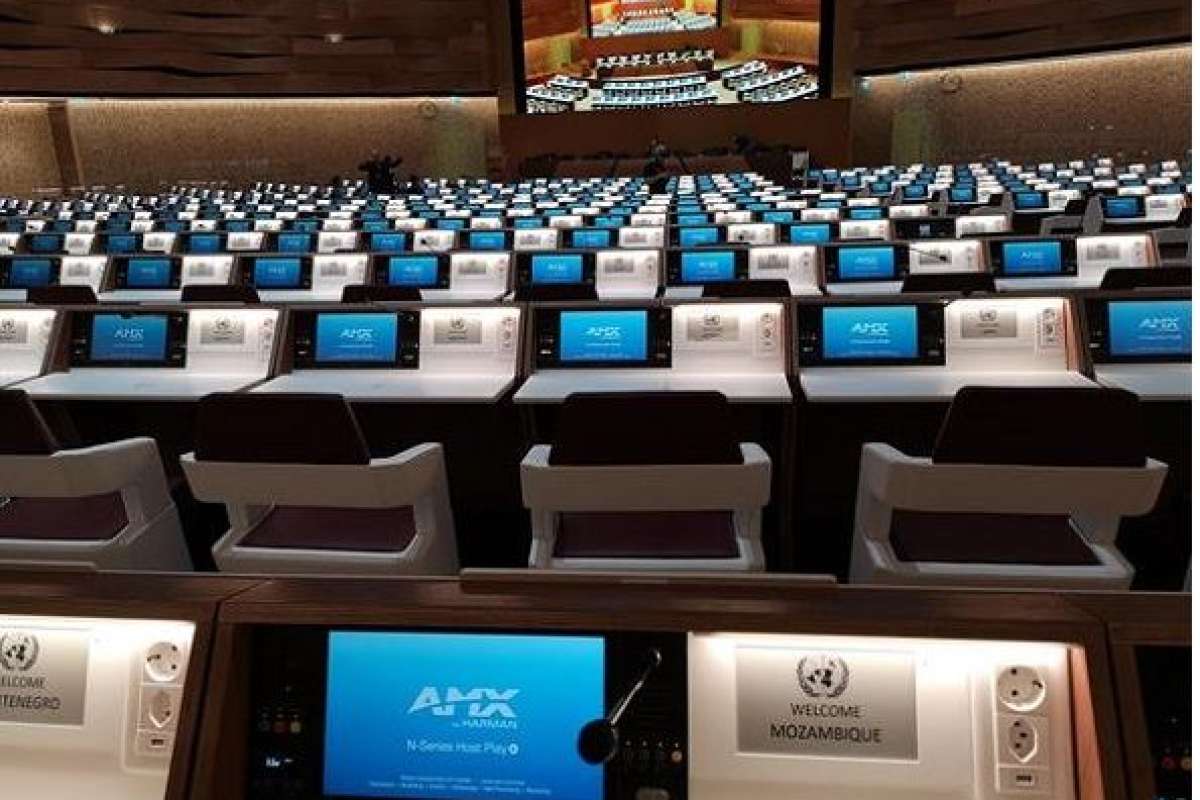 Все решения AMX, использованные в оснащении зале заседаний XIX Генеральной ассамблеи ООН, доступны для заказа в AUVIX.