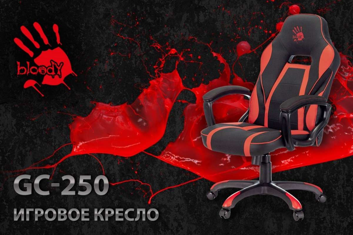 1392898 / Кресло игровое A4 BLOODY GC-250 черный/красный искусст.кожа/ткань