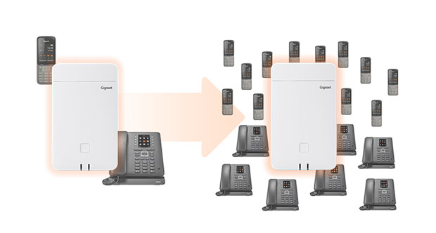 Интегратор позволяет расширять микросотовую систему до 20 000 трубок путем добавления DECT-менеджеров.