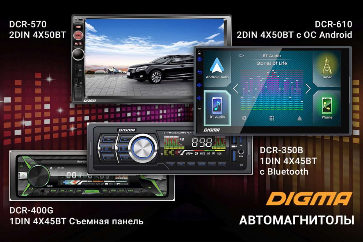 В этом пресс-релизе расскажем о сразу четырёх вариантах звука от бренда DIGMA для вашего авто: автомагнитолах DCR-570, DCR-610, DCR-400G и DCR-350B.