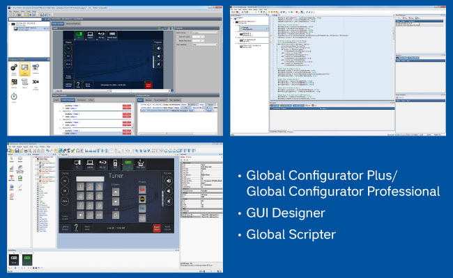 - Возможность полной индивидуальной настройки с помощью программного обеспечения для систем управления Extron — GUI Designer в сочетании с Global Configurator Plus, Global Configurator Professional или Global Scripter.