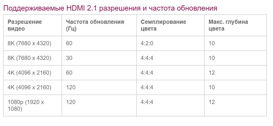 • Поддерживаемые спецификации HDMI 2.1 включают в себя скорость передачи данных до 40,1 Гбит/с, HDR, Deep Color до 12 бит, 3D и аудиоформаты HD без потерь