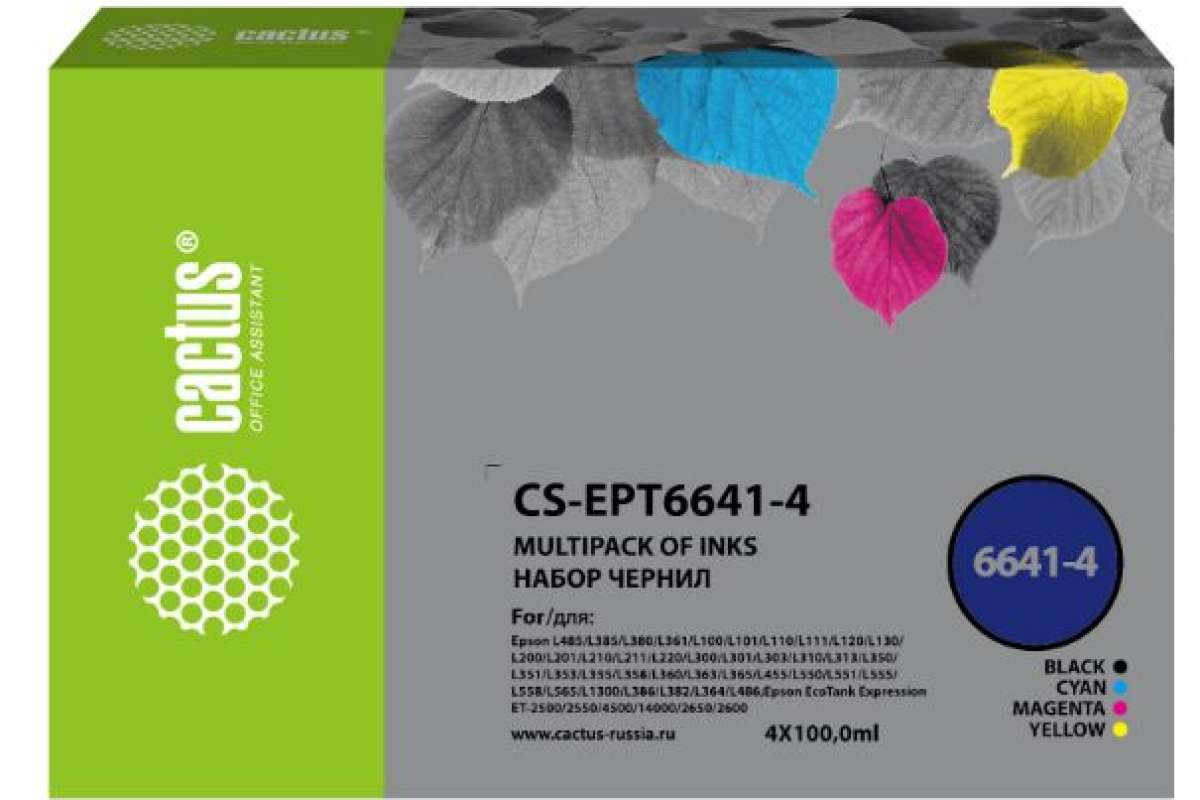 1469397 - Чернила Cactus CS-EPT6641-4 голубой/пурпурный/желтый/черный набор 4x100мл для Epson L100/L110/L120/L132