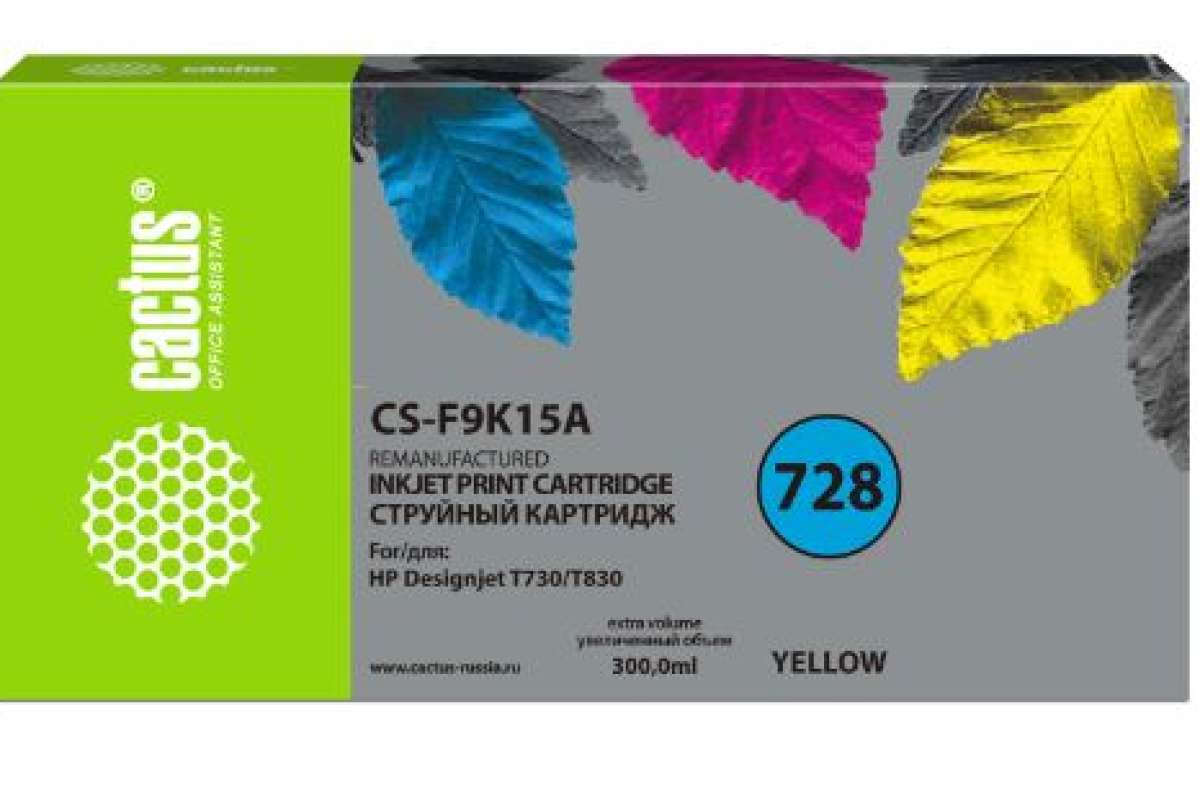 1459497 Cactus CS-F9K15A 728XXL желтый (300мл) для HP DesignJet T730, T830