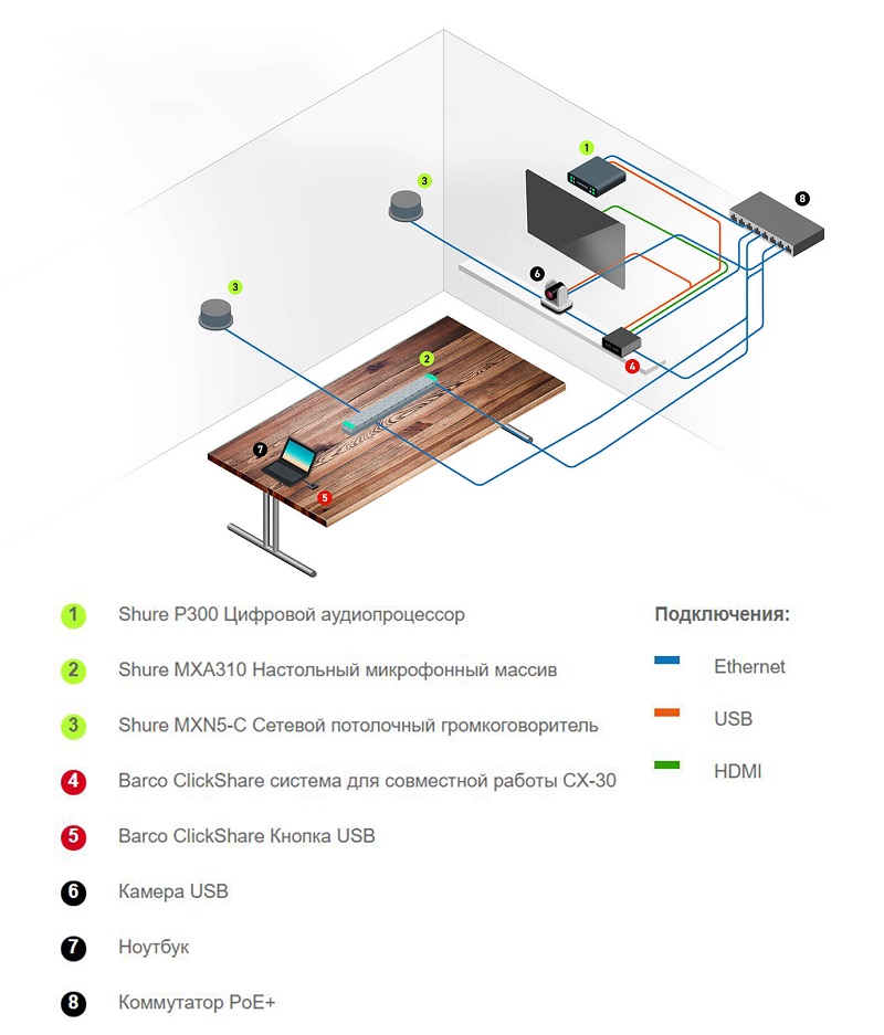 «Ваши клиенты, будь то студенты или руководители коммерческих структур, за счет использования высококачественных беспроводных микрофонов от Shure и конференц-системы от Barco ClickShare будут чувствовать себя так, как будто они находятся в одной комнате с собеседником», - сказал Пол Гуниа, технический директор партнерство в Shure.