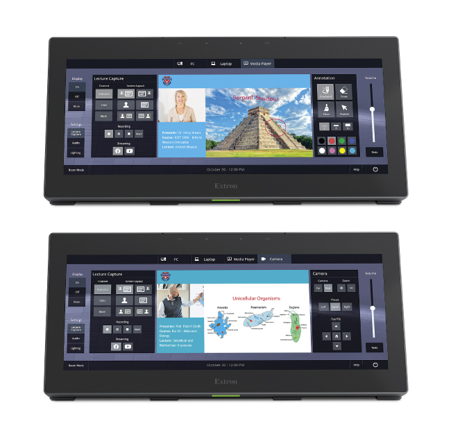 Яркий, широкоформатный сенсорный экран диагональю 12 дюймов с разрешением 1920x720 повышает удобство использования, позволяя просматривать и выполнять сразу несколько задач одновременно. Широкий экран TLP Pro 1230WTG обеспечивает возможность одновременно отображать функции управления AV-системой, предварительно просматривать видеоконтент, а также добавлять аннотации. Эта панель имеет вход для предпросмотра HDMI-видео с поддержкой HDCP совместимых видеосигналов высокого разрешения от источников HDMI. Эта панель также поддерживает функции аннотации при совместном использовании с процессором Annotator от Extron. Элегантный низкопрофильный дизайн минимизирует оптические помехи и улучшает совместную работу в самых разных инсталляциях.